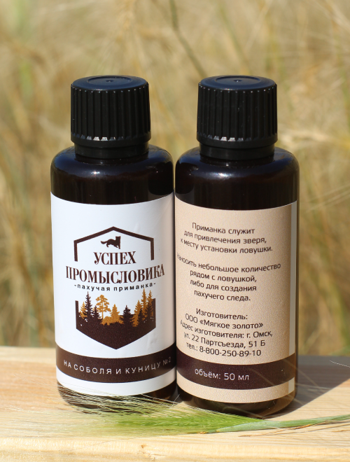 Приманка для капканной ловли соболя и куницы. Альтернативный состав, удачно работающий в мокрых погодных условиях. Зверь учует запах вашей приманки несмотря на непогоду. применяется в течение всего охотничьего сезона. Объем 50 мл.