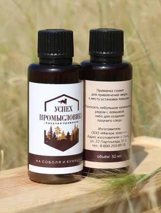 Универсальная приманка для капканной ловли соболя и куницы. Сочетание мускусов и желез натруальных масел рассчитано на максимально продолжительную работу приманки. Применяется в течение всего охотничьего сезона.